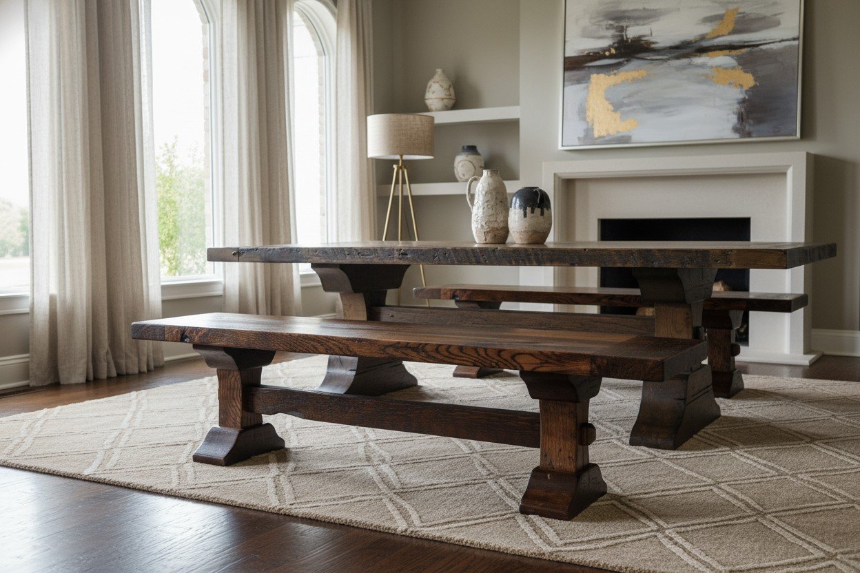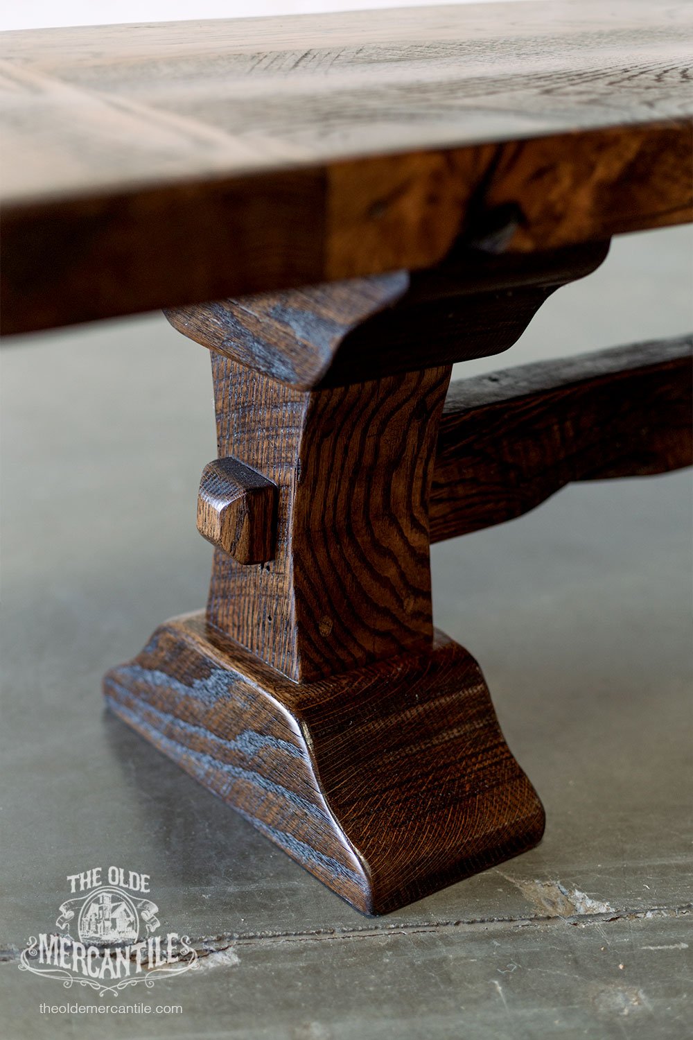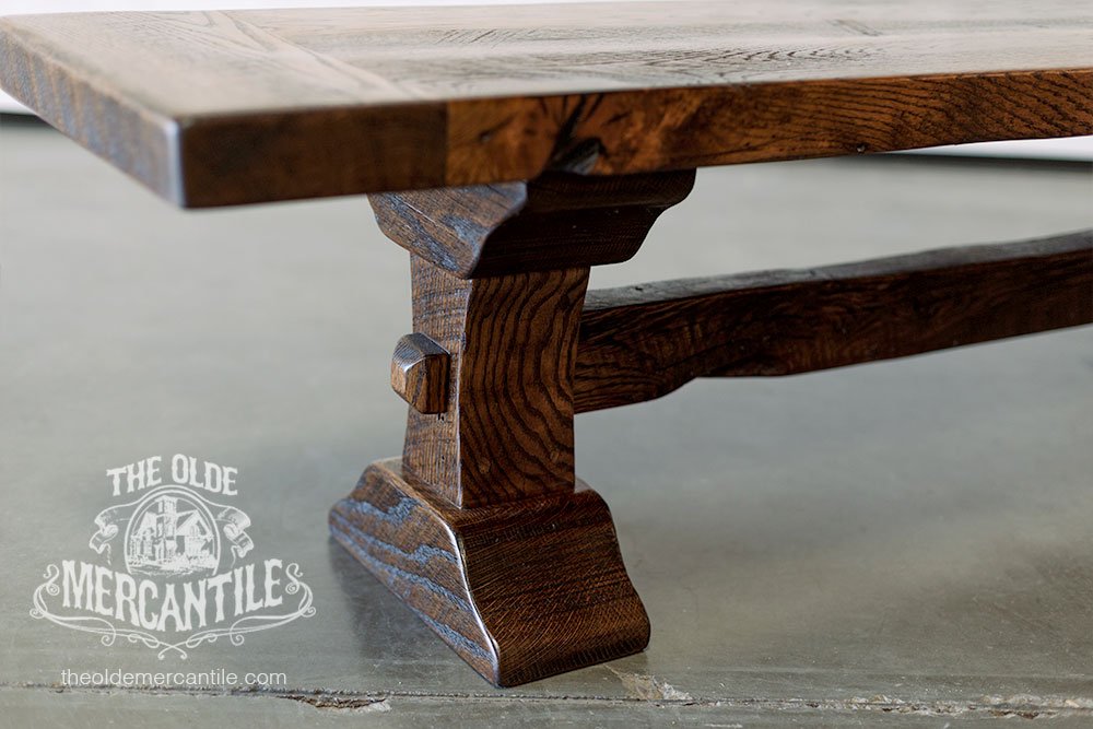 The Lexington is made entirely from vintage reclaimed wood. The exposed sides of the top are “live edge,” meaning it’s the original face as it was cut around 100 years ago. The pedestals are carved from 8″ and 10″ beams.